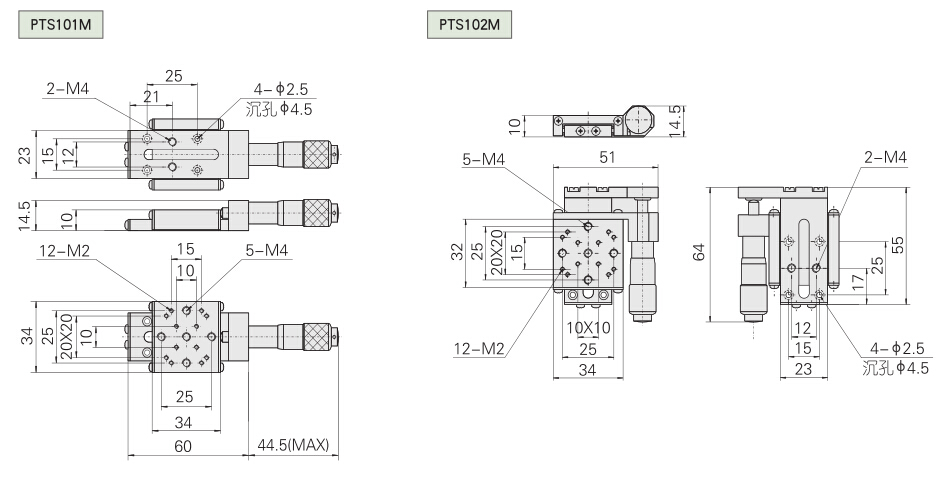 4.Standard threaded holes on both top and bottom of the stages allow secure mounting to optical tables, or additional stages for multi-axes translation.