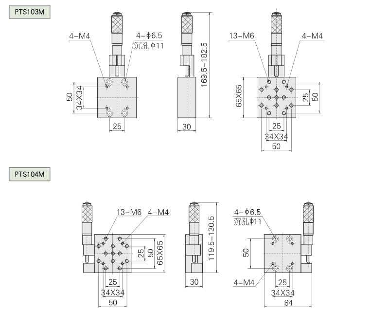 PTS100 series precision postitioning stages