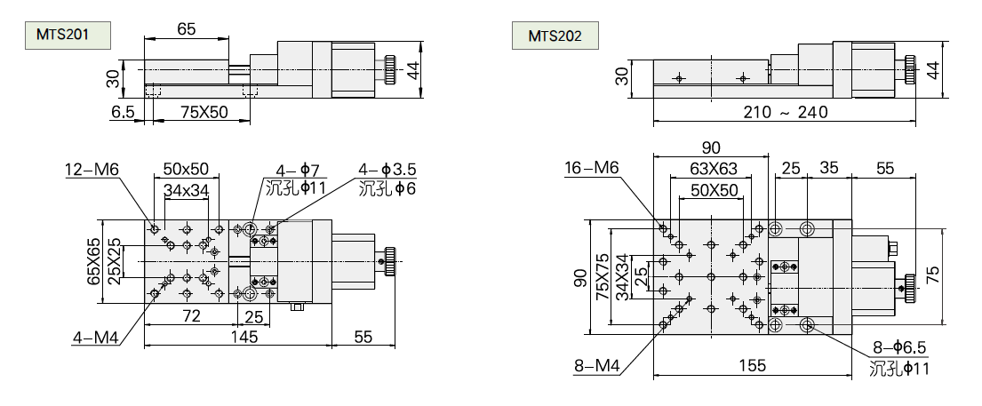 MTS200系列超薄型電控平移臺(V形導軌+交叉滾柱